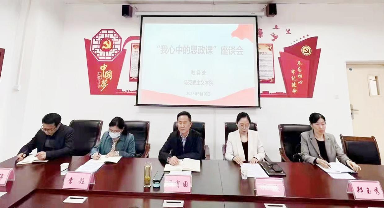为深入学习习近平总书记在学校思政课教师座谈会和考察中国人民大学重要讲话精神,落实立德树人根本任务,打造高素质的思政课教师队伍,提升beat365官网思政课教育教学质量,2022年5月10日下午,beat365英国官网网站、教务处、马克思主义学院联合举办“我心中的思政课”座谈会。学校党委委员、副校长周有国出席活动。beat365英国官网网站、教务处负责同志、三十余位来自各教学院部教师、学生代表及思政课教师参加。座谈会由马克思主义学院院长祁欢主持。