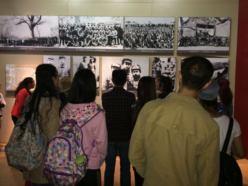 延安革命纪念馆分6个展厅,以1000多幅历史照片和800多件革命文物,生动地再现了党中央及老一辈无产阶级革命家在延安领导中国革命的艰苦岁月。在纪念馆里,同学们依次学习了“土地革命战争时期”、“抗战时期”、“新民主主义革命时期”党在陕北的革命峥嵘岁月,让大家深刻、充分地认识到了革命战争的严峻考验,革命道路的曲折探索,革命的辉煌成就,加深了对党、对革命先烈的崇高敬意,强化了对自力更生、艰苦奋斗,勤俭节约、艰苦朴素,默默无闻、勇挑重担等延安精神实质的理解。