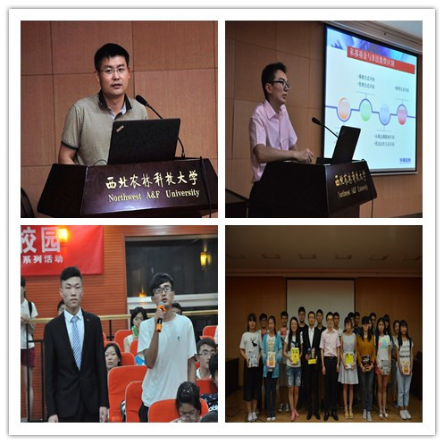 华福证券西北分公司直属营业厅总经理陈大路先生致辞,他针对前些年的金融行情给大家做了简单的分析,区分了股票与基金的特点,并对双方在不同时期的表现进行了简要的讲解。“金融行业,活着是第一位的”,我校优秀毕业生,现任华福西北分公司投教专员潘敏以这样一句话开始了本次讲座。他结合自身成长经验,与全体听众分享了金融市场的生存法则和私募基金的相关知识。他首先帮助大家明确了什么是私募基金,并列举出近几年在互联网金融出现的多起金融理财诈骗案,提到私募基金的五个基本特点:购买门槛高、通常有业绩报酬安排、股票的投资比例较公募基金灵活、往往有流动性安排限制、信息披露较少,并对股票和基金的收益与风险进行了分析,鼓励大家学会理财,谨慎理财。报告会最后以有奖抢答的形式举行知识竞赛,现场同学热情高涨、积极参加,现场很快便将20本与金融有关的书籍赠完毕。