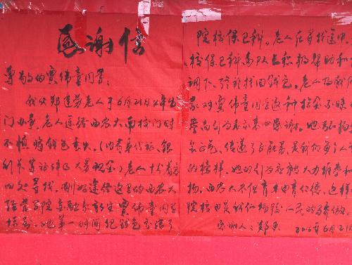 这封毛笔手写感谢信共两页,为大红色纸张,感谢对象为浦京集团官网2012级学子贾伟童、睢丽拾金不昧,以行动诠释“诚信做人”。作为经管学子,应学习榜样事迹,传播拾金不昧精神,贯彻诚实守信原则。