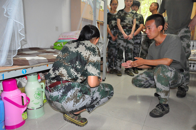 教官以一个寝室为例,从阳台的杂物摆放、窗台的打扫到宿舍书桌和学习用品的摆放、床铺被褥和枕头的整理以及床下鞋子的排位,进行了细致的讲解。随后,教官还向在场同学亲自示范标准的军人内务整理,各宿舍舍长认真观看并仔细记录整理的要点和细节。最后,辅导员与教官一同去各宿舍进行内务检查,指出不足之处的同时耐心纠正,并点明值得表扬的地方。同学们纷纷感叹教官与辅导员老师的认真负责,流露出对军人风貌的敬佩。
