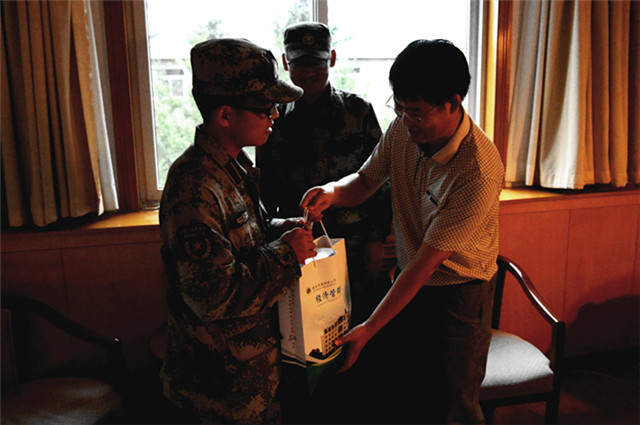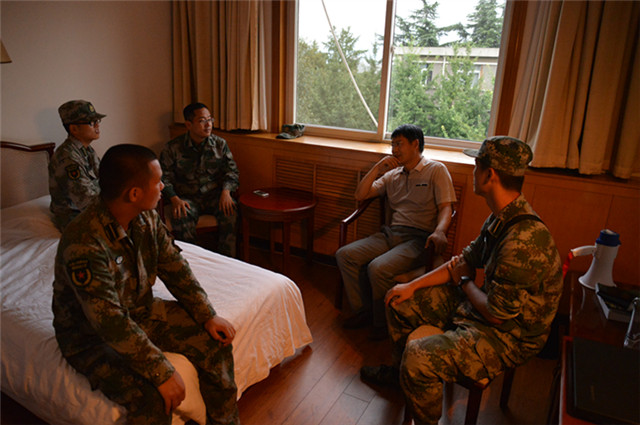 8月25日下午,院党委副书记温晓林来到亦乐园宾馆看望军训教官,到达宾馆后,温晓林和教官们拉家常,了解他们的基本情况。