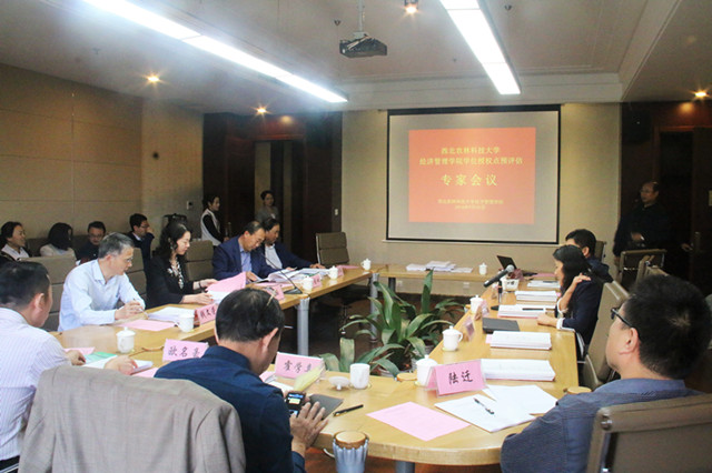 本次会议的评估专家均来自国内农林经济管理、工商管理、公共管理以及应用经济学相关领域,熟悉研究生培养与学位授予工作。他们中有南京农业大学朱晶教授与欧名豪教授,浙江大学钱文荣教授,西安交通大学冯根福教授,东北林业大学田国双教授,以及350vip浦京集团官网霍学喜教授,其中朱晶教授担任评议组组长。学位授权点负责人罗剑朝教授、陆迁教授、孔荣教授和赵凯教授从评估指标体系、学位授权点的基本情况、目标标准、基本条件、人才培养和学科点特色六个方面分别就农林经济管理博士一级、应用经济学硕士二级、工商管理硕士二级以及公共管理硕士二级学位授权点的建设情况做了详细汇报。