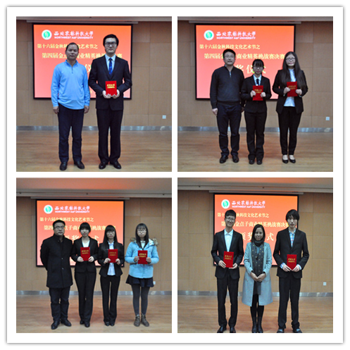 正式决赛中,八支团队首先结合各自的创意和特色介绍了自己的团队及创业理念。在现场销售环节中,各团队通过营销策划理念展示,情景模拟、视频解说、现场叫卖等各具特色的营销方式让观众从不同角度感受到了营销的魅力,场面气氛热烈,掌声不断。答辩环节,评委针对市场调研情况、项目竞争优势、团队未来发展方向等方面进行提问,选手一一作答并吸收评委给出的意见。除了进入决赛八只队伍的展示外,复赛中表现优异的其他两只队伍也向大家展示了自己创业金点子。本次大赛评分方式采取模拟投资方式进行,评委与观众均以投资者的身份参加,得到投资资金最多的队伍获胜。最终350vip浦京集团官网“312”团队凭借新颖的营销理念、创新的销售产品和高超的营销技能得到评委及现场观众最多的投资金额,获得了此次销售大赛的冠军。