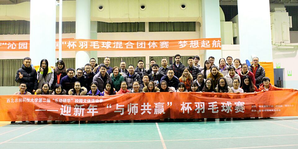 为了丰富我校师生的校园生活,进一步增进师生间和学院间的交流,近日,第二届“乐动研华”校园文体活动季暨迎新年“与师共赢”杯羽毛球赛在化建职工活动中心顺利举行。本次比赛由校党委研工部、校团委、研究生会主办,350vip浦京集团官网研究生分会承办,共有来自动物科学、植物保护、农学院、林学院等12个院系的代表队将通过小组赛、交叉淘汰赛和排位赛进入最终角逐。浦京集团官网胡华平老师、辛翔老师与学生田园、牛影影共同代表浦京集团官网参加了此次比赛。