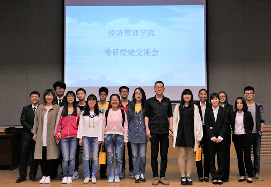 会议伊始,五名同学分别从备考经验、考研亲身经历、考研动机与形势、考研复试的注意事项等方面进行全面细致的分析讲解。期间,魏昕阐述了自己的复习计划,简洁明晰的说明了各科利弊与考研过程中的重要程度,并细心地提醒各位同学要辩证对待考研辅导的复习资料;苍耀东梳理了考研报考的各个环节流程,着重强调了考研过程中要有良好的心态,以及复试过程中可能出现的困难与相应的解决方法;杨凡分享了自己详细的考研复习与应试经历,强调考研并非只需一个高学位,更需要一个适合自己的录取结果;段静琪从当前的考研形势上分析,并提醒同学们在选择合适学校时应该考虑的种种因素,以及经济管理专业考研时所要复习的重点内容;刘娱则是对考研科目的复习方法与复习安排中的注意事项进行讲解,由小处着手为同学介绍具体的考研规划方案。会后,现场同学积极参与互动,提出自己的困惑,五位优秀的学长学姐也耐心地为他们解答。