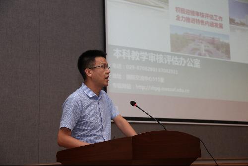 随后,副院长刘天军结合学校预评估专家提出的意见及学校的改进工作方案,结合学院整改工作中的八个问题和十九个任务,从三个方面安排学院的审核评估改进工作。首先从学院领导、各系、教研室主任、教师完成具体任务进行部署,明确责任,确保在规定时间内高质量完成安排的评估任务;其次他从教师在课堂的教学方法、课堂质量、学风三个方面为抓手,强调教师要注重提升教学能力,为迎接本科审核评估奠定良好的基础;最后学院安排在7月31日前,教师要完成近三年的试卷自查和各专业毕业论文的自查工作。