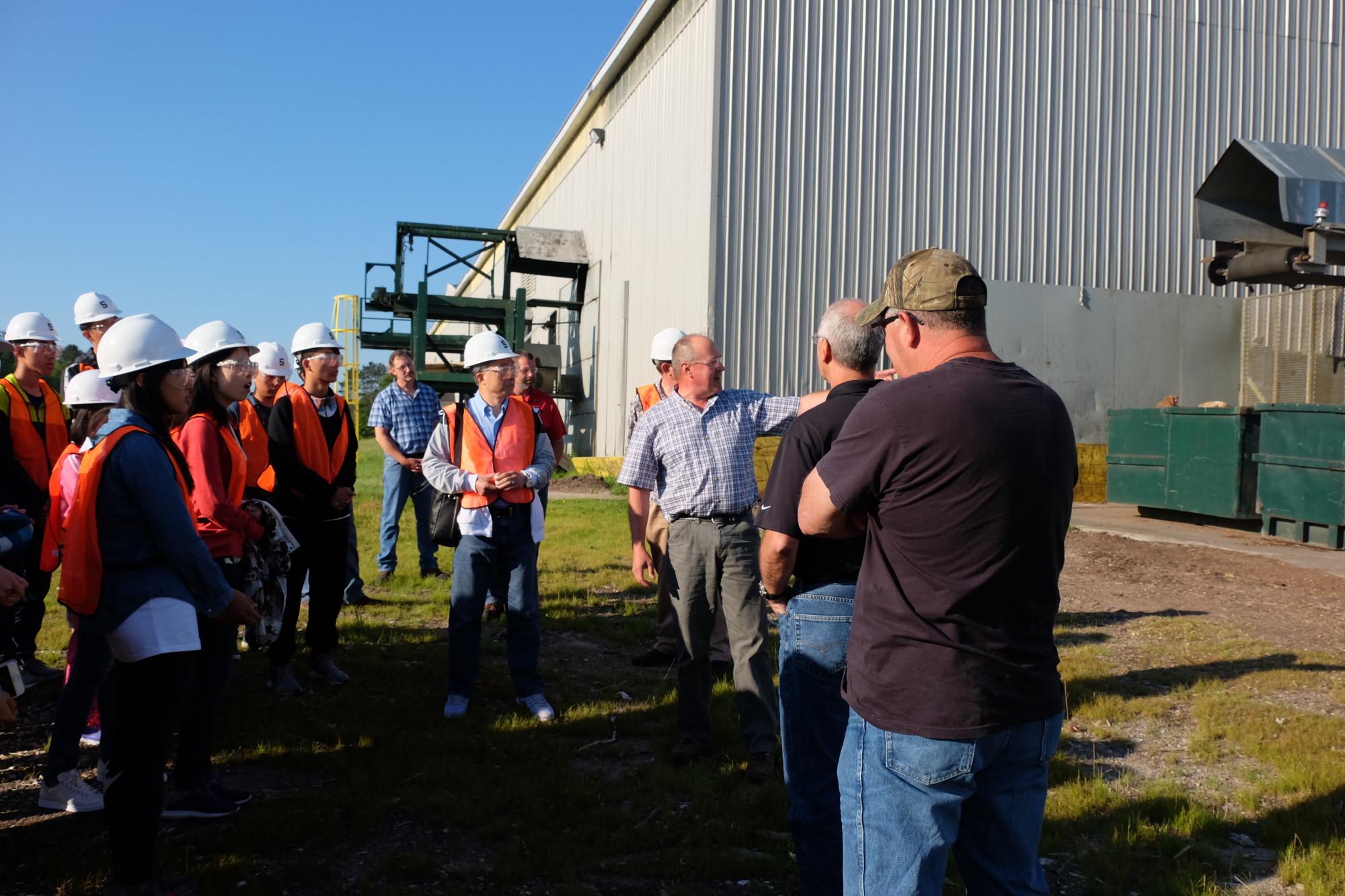 7月28日上午,密歇根州立大学(MSU)访学团来到位于密歇根州上半岛的Timber Products Company,参观木材深加工产品——木材薄片的生产过程。MSU森林系实验站的Dr. Ray Miller和公司员工向大家介绍了多种木材进厂后的筛选方式、加工过程中的各个步骤、加工后的品种分类以及如何通过精加工来达到木材的增值的目的,并带领大家观看了木材加工的流程。