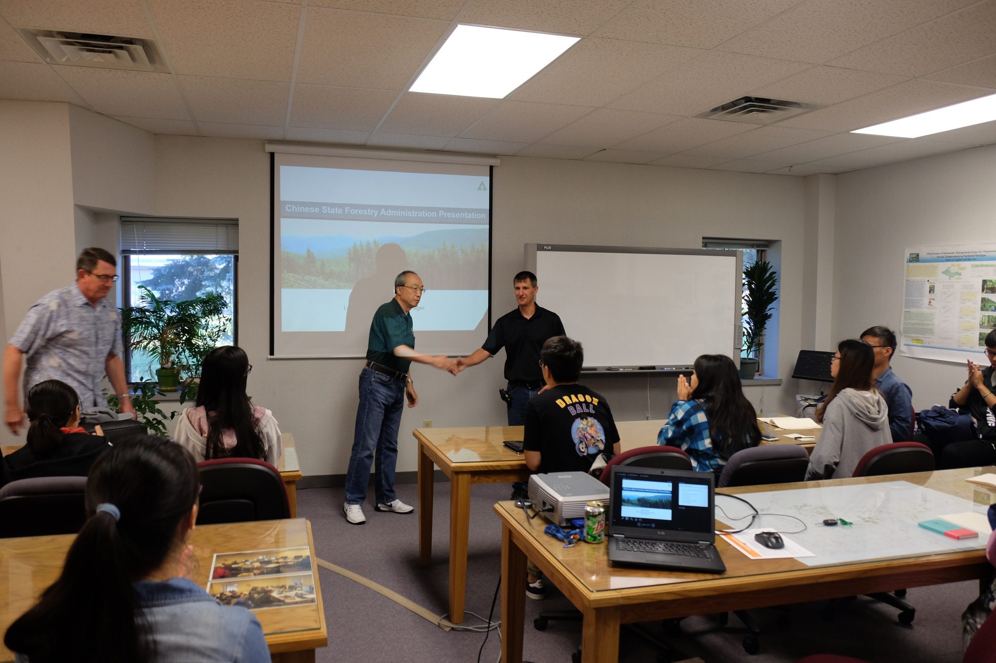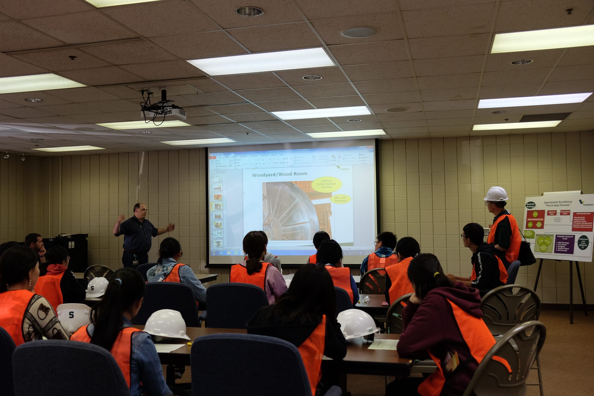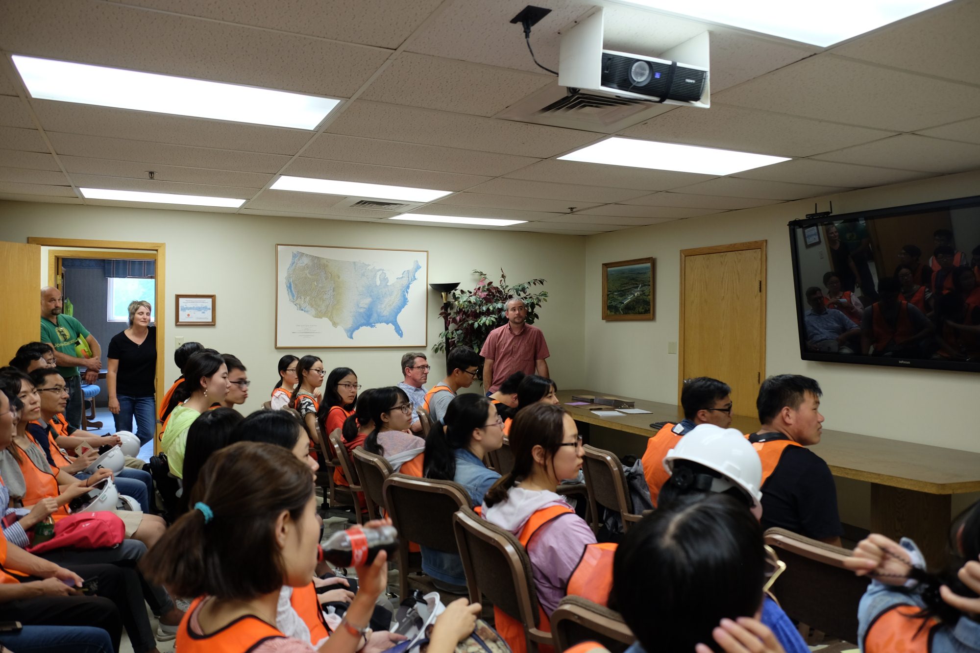 7月28日,访学团一行继续在密歇根州上半岛进行参观学习。上午,同学们首先来到位于Escanaba的惠好集团(Weyerhaeuser)分公司,聆听了密歇根州湖区市场经理Bill O'Brion的讲座。Bill O'Brion热情地向访学团成员介绍了惠好集团发展的历史、林区分布状况、公司所有权经营方式以及如何保持林地可持续发展等方面的相关知识,使访学团成员对美国惠好公司的经营模式有了一定了解,也增加了林业管理方面的认识。Bill O'Brion以自身的职场成长经历为例,进一步阐述了惠好公司的经营理念,即注重生态保护,包括保护物种多样性、保持良好水质、注重环境美观等。随后,访学团来到Verso造纸厂,该造纸厂年产量达到50万吨,是北美大湖区最大的造纸企业。同学们在听取和了解解了造纸的流程及步骤后,在Verso员工的带领下参观了从木材运输到成品纸制品的整个造纸生产流程,并就污水处理、原料选材等问题进行了交流。