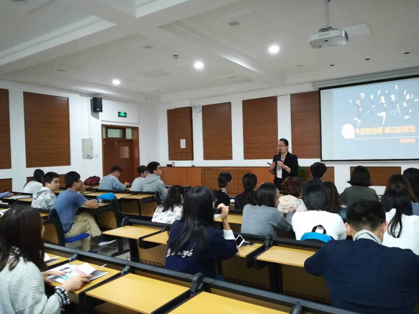 宣讲会开始前,李经理先是跟同学们做了小互动,既是彼此熟悉,也是帮助大家做一个精准定位。随后,她针对锦绣集团所包含的板块、招聘岗位和福利待遇进行宣讲,字字珠玑,深入内心,使同学们对北京锦绣投资有限公司有了全面的了解。