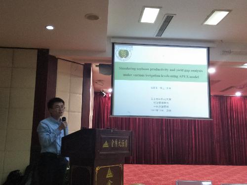 2017年11月16-18日,第四届“农业模型高级研讨会 2017”在郑州举办。大会包括特邀国内外著名农业模型专家主题报告、相关代表农业模型研究与应用报告、我国农业模型研究发展讨论与中国农业模型联盟建立等三个方面。来自国际水稻所(IRRI)、英国洛桑实验站、中国农业大学、350vip浦京集团官网、南京农业大学、中国科学院地理与资源研究所、中国气象局、河南气象局等国内外高校和学术组织的学者参加大会,参会代表200余人。与会代表们围绕作物模型开发、模型比较、模型应用、模型监测预报、尺度转型等等方面进行了深入地探讨交流。浦京集团官网青年教师张蚌蚌博士参会,并做主题为“Simulating soybean productivity and yield gap analysis under various irrigation levels using APEX model”学术报告,并和国内外同行对作物模型在耕地质量评价与管理方面的应用进行了深入交流探讨。