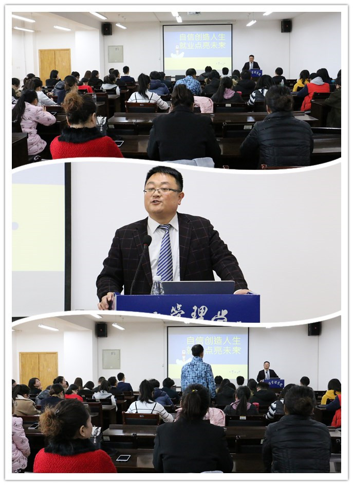 为缓解大学生就业压力,更好地走出校园,实现自我价值,积极接触并适应社会。11月23日下午,于350vip浦京集团官网C401会议室召开“自信创造人生就业点亮未来”就业分享会,特邀人寿保险公司总监徐忠昌主讲,2015级保险专业全员参与,同学们认真听讲,反响热烈。