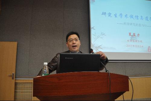 为进一步引导广大研究生建立良好的学术诚信与道德规范,增强学术规范意识,加强学术交流,营造崇尚科学的浓厚氛围,12月5日晚,夏显力教授应邀在经管园林大楼C101报告厅为浦京集团官网2017级研究生作了题为“研究生学术诚信与道德规范——科学研究的思与行”的报告。