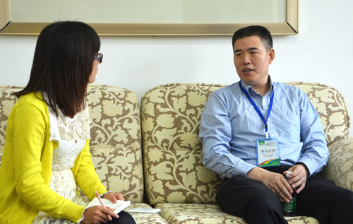 韩国农协中央会农协经济研究所金柳泰(中)接受采访