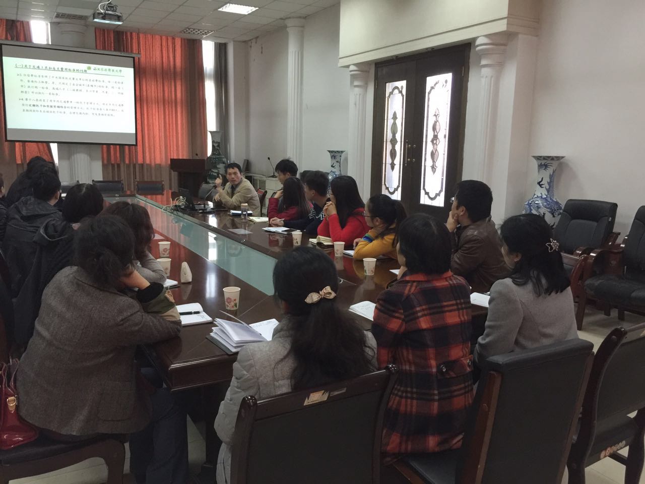 会上,胡信生介绍了学校差旅费、会议费两项管理办法制定的背景、过程、依据及指导思想。胡处长指出,学校根据《中共中央办公厅、国务院办公厅关于进一步完善中央财政科研项目资金管理等政策的若干意见》(中办发〔2016〕50号)文件要求,在广泛听取各方意见和建议的基础上,聚焦突出问题,遵循以人为本、放管服结合、政策落实落地的原则,力求职工利益最大化、资源利用效率最大化、管理成本最小化。他针对《差旅费管理办法》聚焦的三方面问题以及《会议费管理办法》的创新之处做以细致解读,并就财务报销与财务管理方面与在座老师进行了探讨交流。