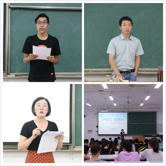 为端正学生的学习态度,树立优良学风,提升学生的诚信考试意识,严肃考风考纪,6月14日晚在N8T11教室举行“严考风 树学风”2017级考风考纪教育大会。学院党委副书记温晓林,辅导员孙权、王倩茹及200余名学生代表参加会议。