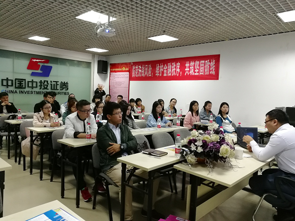 9月21日上午,浦京集团官网2017级金融专硕班赴西安中投证券营业部进行了为期半天的教学实习。中投证券的领导和员工们对学院师生的到来表示热烈欢迎,并对西安中投证券营业部的规模、公司结构以及发展状况作了简要介绍。随后,中投证券的领导给学院师生连续作了两场专题报告会,分别陈述了目前国内的经济形势以及企业IPO的知识。