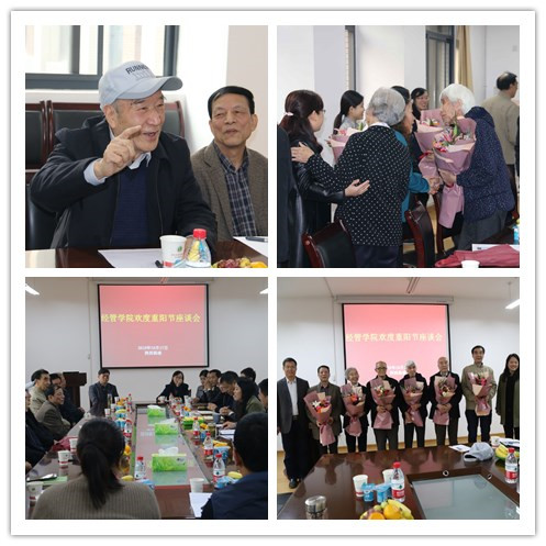 王忠贤教授回顾了我国四十年改革开放的农业经济发展历史,通过亲身经历,与大家一起分享了自己一生在教学科研中,秉持“保障农民经济利益、尊重农民民主权利”、“不反对,不盲从”两个原则,从选题、立题、内容、方法、经验、技巧等方面讲述了自己多年从事科研工作的心得与体会;周庆生教授则从科研团队建设、团队专业结构方面分享自己的经验,认为科学研究不能割裂,应合理调动人员合作,发挥各人优势,才能做出优秀成绩;高岩老师现场即兴赋诗一首,“拨乱反正靠三中,改革开放乘东风,鼎新革旧沉疾除,承前启后伟业兴,不忘初心谋发展,牢记使命立新功,举世瞩目十九大,大国崛起再飞腾”,表达回到学院与大家共渡节日的愉快心情,祝愿学院未来发展百尺竿头,更进一步!新进教工邱璐博士、教师代表王礼力、杨文杰、雷玲、邵砾群、杨虎峰也表达了对老先生们的节日祝福,大家表示一定传承学院优良传统,继续发扬经管精神,为学院的发展贡献自己的力量。