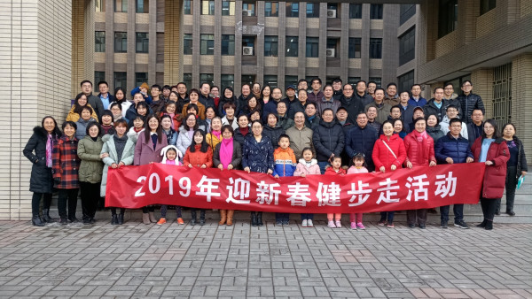 在2019年新春即将来临之际,为丰富学院职工文娱生活,增强学院广大教职员工体育锻炼意识,1月19日下午,院百余名教职工积极参加院工会组织的“迎新春、健步走”活动。此次活动从经管园林大楼东侧合欢路出发绕校园一周,全程约4公里,历时1个小时。在学院楼前合影后,大家开始了健步走活动。全体教职工边走边聊,一路上欢声笑语,其乐融融。