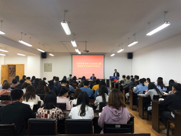 4月8日晚,学院于C401会议室举办第九期预备党员培训班开班典礼,党委书记张岁平、党委副书记张军驰、马克思主义学院青年教师胡庆有、党课班主任出席会议,第九期预备党员培训班全体学员到场参加,会议由张军驰主持。