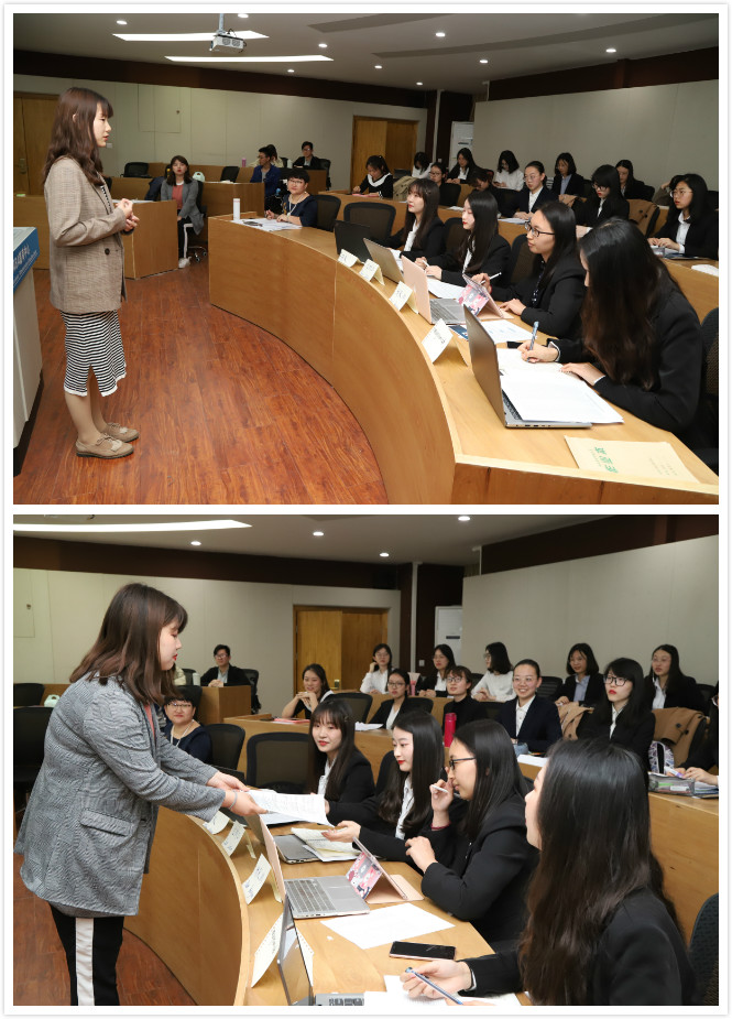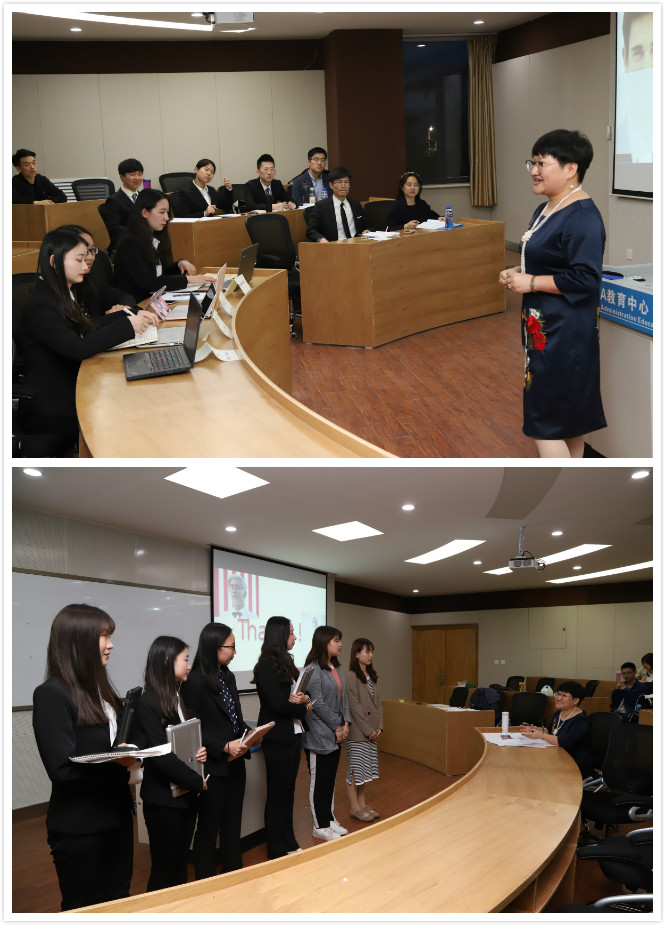 4月11日晚19:30,本科生国际创业培训考试在C301马蹄教室拉开帷幕,本次结课考试主要分为自我演讲、面试模拟和投资模拟三种形式,38名学生分小组进行展示,Yongmei Zhang老师对每个小组进行点评。