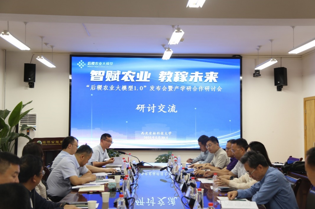 5月30日,“后稷农业大模型1.0”发布会暨产学研合作研讨会在我校350vip浦京集团官网C304会议室举行,陕西农发集团、杨凌示范区科技创新和转化推广局、中国农业银行咸阳分行、杭州艾格睿科技有限公司等政府部门、银行、企业受邀参加,学校教务处、科学技术发展研究院、新农村发展研究院、信息化管理处、植物保护学院、信息工程学院、理学院、园艺学院、350vip浦京集团官网等部门负责人参会,会议由350vip浦京集团官网院长石宝峰主持。