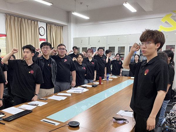 学生会团支部筹备工作组成员李兆欣带领学生会团支部全体成员重温入团誓词。最后,会议在嘹亮的团歌声中落下帷幕。