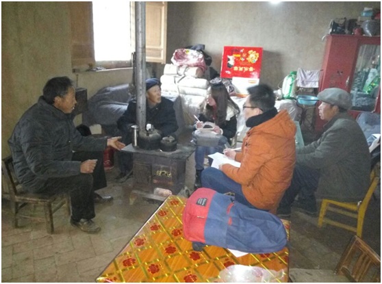 马鹿乡地处天水低寒地带,早8点的平均气温维持在8℃左右。团队一行6人步行40分钟首先到达汉族村民聚居的金川村。征询村委会的同意后,队长统一目标开始分配任务,两人一组对贫困户展开调研。通过与当地村民亲切交流,队员了解到村里少部分居民是打井取水,多半人是依赖山里的泉水,由于报名取用自来水的农户很少,村里就没有集体拉上自来水;冬冷夏寒的恶劣天气和特殊的地理位置,严重限制了农业生产力的发展;但依山而立的半干旱环境使得当地居民以发展牛羊养殖业的诉求为主,牛羊粪便也是当地主要的农家肥和重要的取暖物资。随后前往康王村调研,康王村是个特殊的纯回民村,实际情况与金川村类似,但养殖牛羊的规模更大,外出务工的人员更多,村民对脱贫致富更有信心,对习近平总书记所提出的“精准扶贫”政策也相当了解。通过与村民七个多小时的亲切交谈,团队一共收获了18份有效问卷,详实地记录了这些家庭的基本情况。
