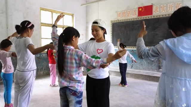 志愿者教孩子们跳舞