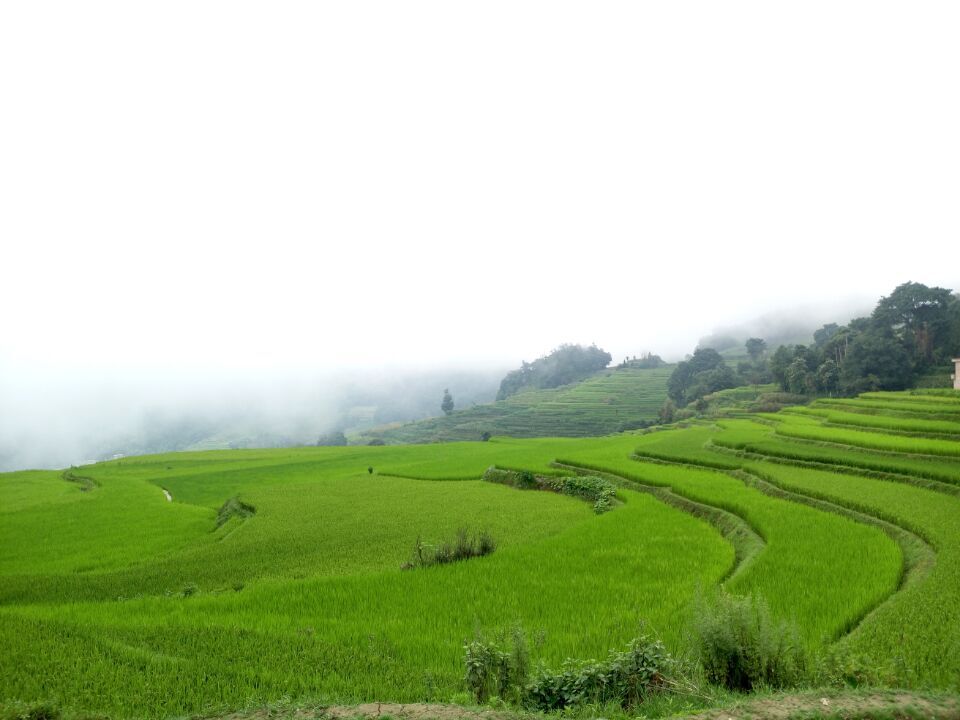 盘山公路,弯多路窄,不过一路上风景不错,爬上云雾笼锁的山腰,直奔胜村考察哈尼传统梯田系统。