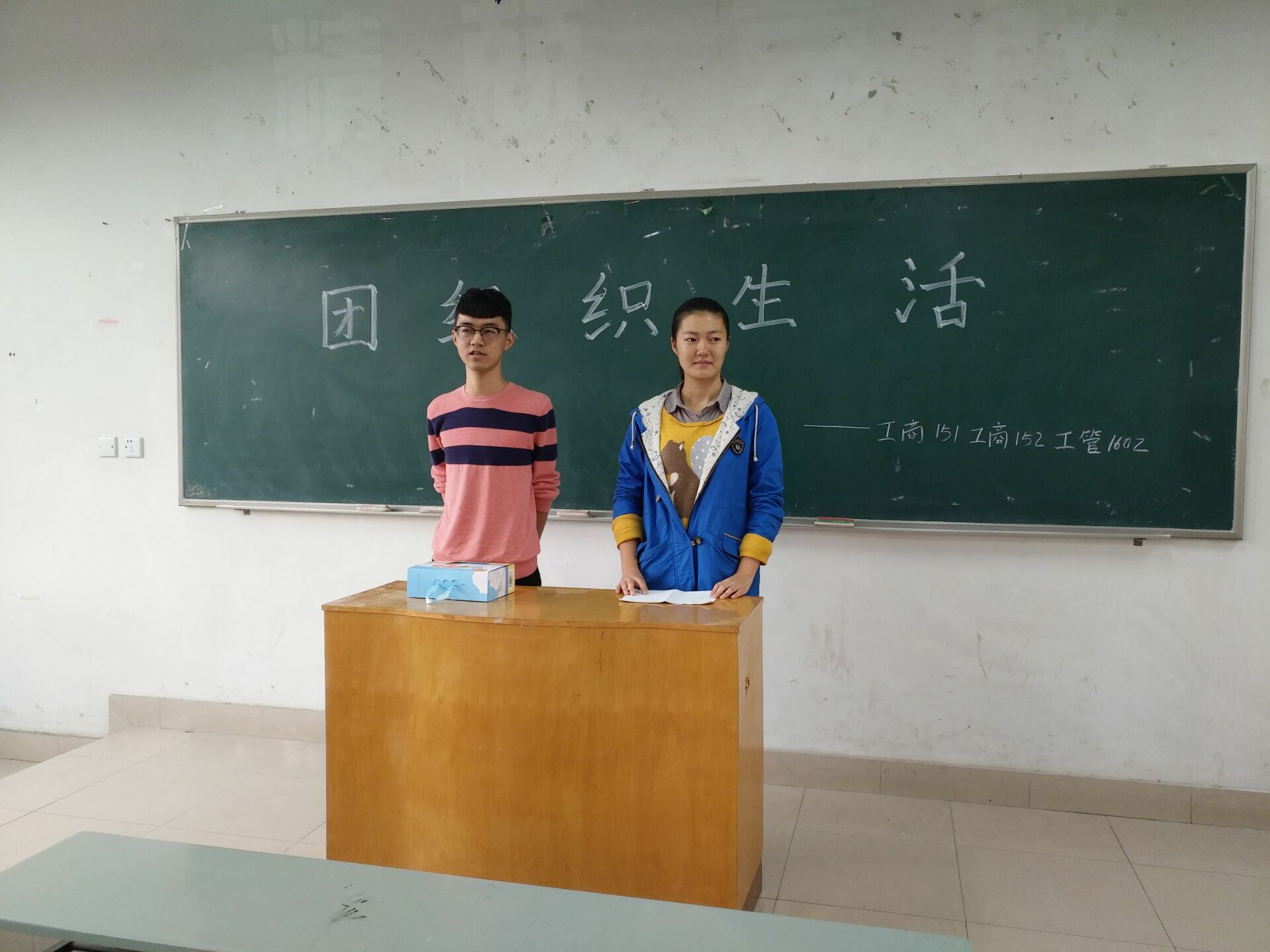2016年10月18日下午,工商151班,工商152班及工管类1602班在植保楼6B53联合举办团组织生活,主题为“老生带新生”。本次团组织生活由工商151班的马明义和工管1602班的程悦主持,共计80位学生参加。
