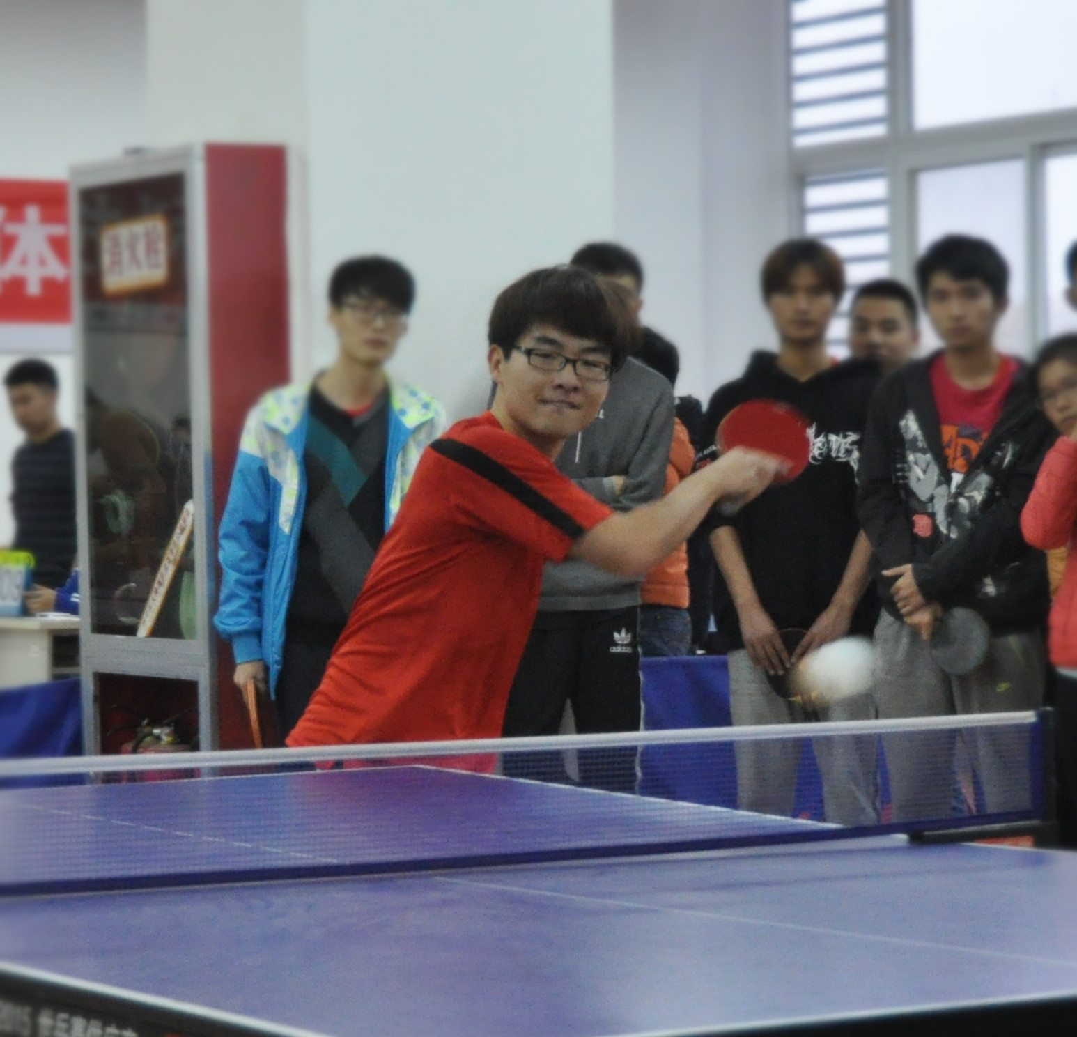11月18日下午,浦京集团官网乒乓球队在小球馆中参加2016年院系间乒乓球团体赛。比赛中,队员时而扣球击杀,时而反手进攻, 时而巧妙防守,汗水浸湿了衣衫,但他们的精神无不展现出浦京集团官网顽强拼搏的风采。在球赛结束后,我们有幸采访到浦京集团官网乒乓球队队长——经济141班周鹏达,一个平易近人,开朗活泼的大男生。