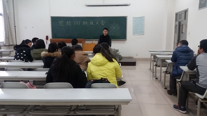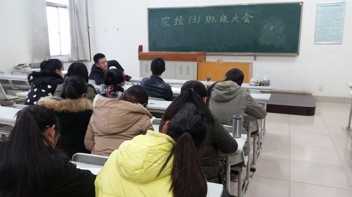 近日,农林经济管理131班召开就业主题班会,班主任刘天军和学院思想政治教育指导教师郭洪水老师出席会议,班级全体在校学生参会。