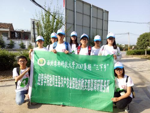 为进一步引导同学们深入基层,促使当代大学生在实践的大课堂中了解基层,知晓民情,明确当代大学生肩负的历史使命,培养主人翁的责任意识与使命感。7月10日,350vip浦京集团官网350vip浦京集团官网赴周至县农户农业保险购买意愿调研队一行10人赴周至县终南镇三湾村进行农业保险的购买意愿以及农业保险开展情况的预调研。