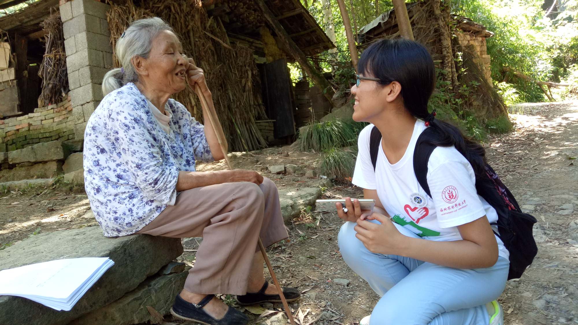 与当地老者亲切交流