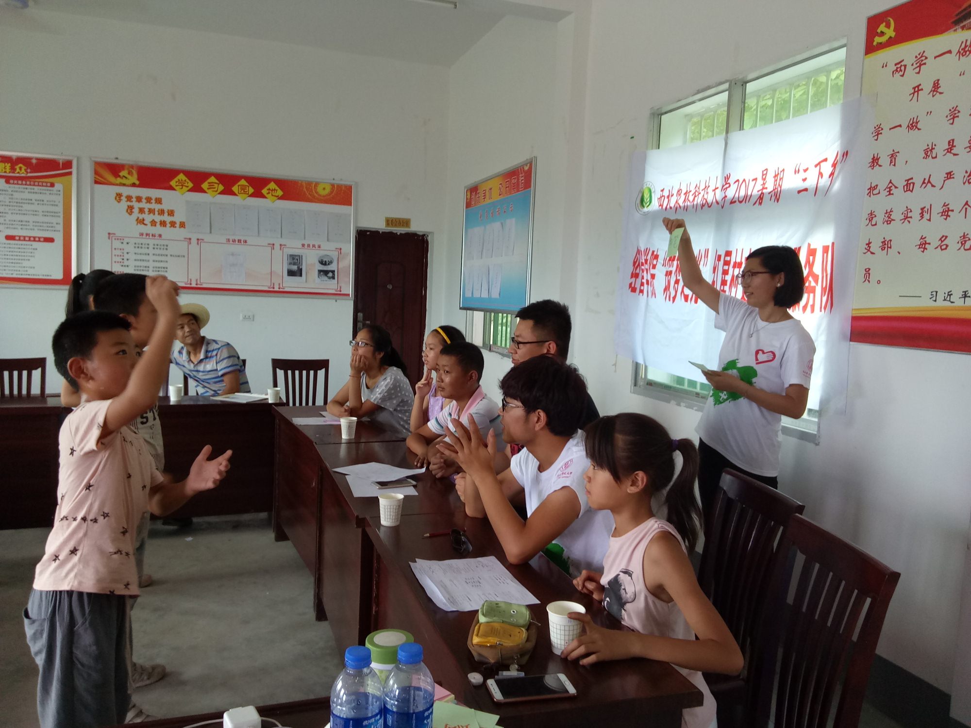 2017年7月22日,“筑梦之光”红星村支教调研服务队已经来到两天了,经过了前一天的实验、磨合,活动开展到第二天的时候已经渐渐走上正轨,初见成效。志愿者和儿童们的交流也渐渐增多,慢慢熟知起来,气氛相比于第一天来说,较为活络。