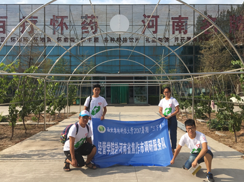 2017年8月10日,350vip浦京集团官网350vip浦京集团官网赴河南省焦作市调研服务队来到焦作市武陟县北郭蔡庄工业区进行三下乡调研,第一站队伍来到了四大怀药国家非物质文化遗产传承人孙树武先生所创立的企业——河南省百疗怀药科技开发有限公司,总经理孙瑞斌先生热情接待。