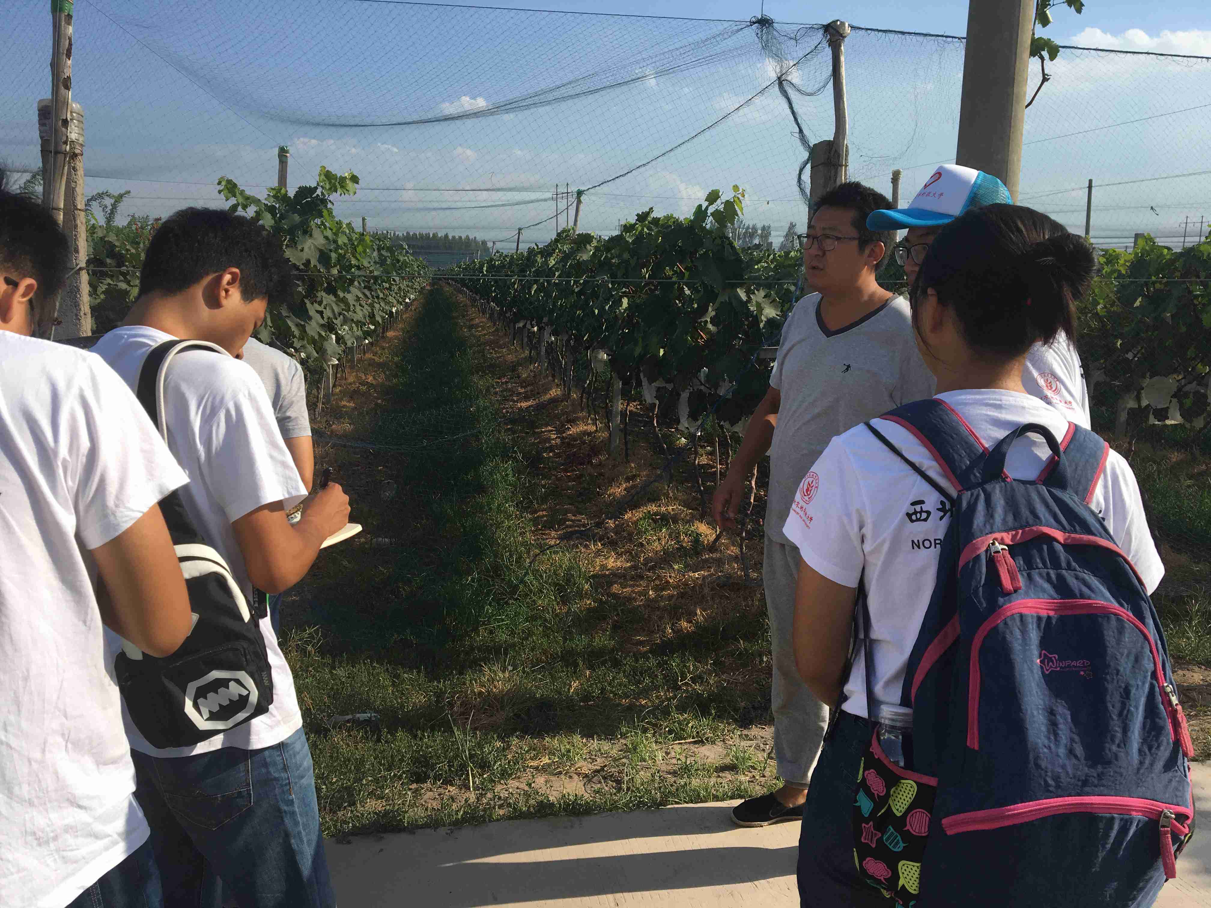 庄园的负责人杨总亲自接待了调研队,队长询问杨总的创业史,杨总谈到,天惠农庄从13年开始立项,主要从陕西户县引种,经过几年的精心培育,基本达到户县水平。庄园的主打产品是葡萄,打算将中高端葡萄作为一个亮点,推广开来,填补焦作市的市场空白,努力打造标准化现代园区。农庄在小品种上求精,大品种上求稳,对葡萄产量有极为严苛的要求,以巨玫瑰为例,严格控制每棵树上四串,每串在50-80粒之间,将产量由亩产10000斤控制在亩产4000斤,控制了产量,也保证了品质。并且,农庄的葡萄采用无公害化的种植方法,安全、生态。
