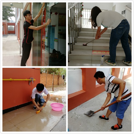 上午八点半到达福利院后,福利院的负责人对志愿者的到来表示十分欢迎,并向志愿者介绍了福利院的大体情况。随后,在福利院工作人员的安排下,志愿者们分成了四组进行义工活动。天气炎热,但是依然没有阻挡志愿者们活动的热情,清洁楼梯以及栏杆、擦窗户、打扫路面,志愿者们认真努力的做着自己手上的工作,在活动的过程中,志愿者们还和老人聊天,询问最近老人的情况。经过两个多小时的努力劳动,本次胡氏爱心社福利院义工活动顺利完成。“西农的娃素质就是高啊!”这是老人们和福利院工作人员对志愿者们的评价。