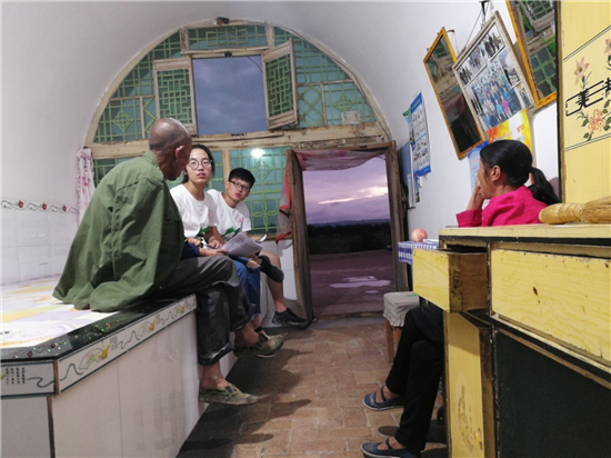 当日,调研队分为两组,在村子从前往后挨家挨户开始调研,调研队当日的主要工作是村户基本情况的调研问卷的填写和新农村政策的宣传。在调查过程中,其中的一户王姓村民给调研的队员们留下了十分深刻的印象,队员一来到他们家,就受到了十分热情的招待,他们不仅招呼着大家坐上了家里的热炕,而且当即从地里摘了西瓜切给队员们吃。而在调研询问是,队员们了解到,他们家的家庭条件十分不好,爷爷的腰伤十分严重,可迫于生计,仍需要下地干活,在农闲期间还经常进城务农,奶奶的眼睛也几乎看不见东西,儿子也到了谈婚论嫁的年龄,却因家庭情况还没有结婚,但说起如今的生活,他们仍然是满怀着对生活的热情和对未来美好生活的向往,对当今的扶贫政策也是赞叹连连,看着他们粗糙的脸上质朴的笑意,只觉异常的感动 。