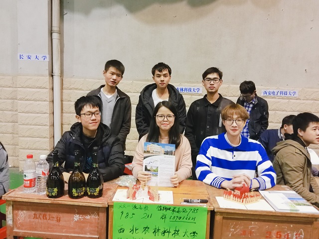 中午十一时二十分,各高校学生代表在体育馆布置会场,我校秦健智、贺小赫携带宣讲资料到场,着手布置西农的宣讲位置。下午四时十分西农学生代表在会场集合,通过放映PPT、播放西农宣传片、分发西农明信片及宣传资料等方式进行宣传。活动现场,六位西农学子向学弟学妹们介绍了西农的专业及其录取情况,同时还为学弟学妹们答疑解惑,如怎样学习数理化、怎样快速进入学习状态等等,其中,葡萄酒学院陈千逸同学通过葡萄酒品鉴的方式介绍西农特色葡萄酒及葡萄酒学院,吸引了众多学弟学妹们的关注。我校学生代表还建立了交流群,供日后学弟学妹们提问。