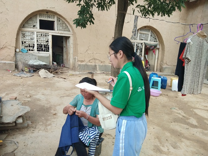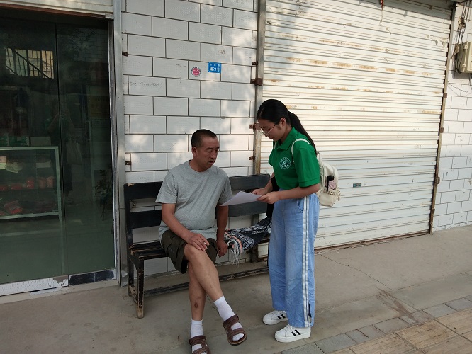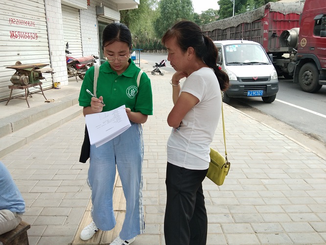 队伍到达王上村,村子的卫生条件与整体外貌都比较优越,街道里设置垃圾桶,道路整洁干净,政府在村庄改革方面所作出的努力是有目共睹的。村委会主任很热情的帮助队员填写问卷。从询问中可以发现,主任对村里的各种事情都很熟悉,他向队员们表示:“王上村的科普项目做的比较好,在人居环境方面,全村进行了厕所革命,将旱厕改为水厕,这是居民生活条件上一大进步,大大改善了村子卫生条件和居民健康状况。