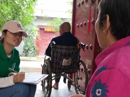 队员仔细询问留守老人