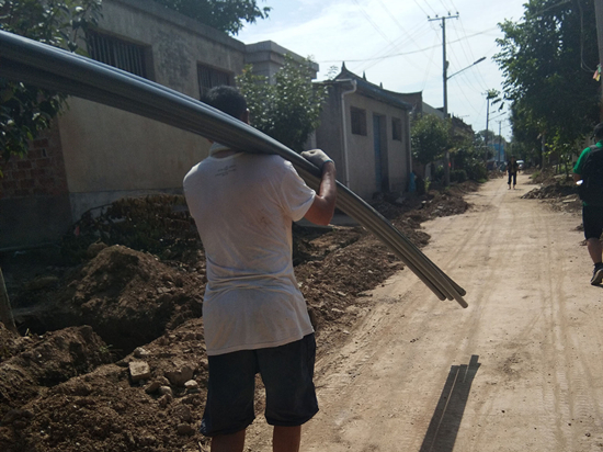 在给队员们介绍的过程中,农户们满脸都是喜悦之情,难掩高兴之意。虽然村里为了安装自来水管道大兴工程,有些尘土漫天,但农户都积极配合工作,天气炎热,酷暑高温,没有人喊累,没有人喊苦,没有人抱怨,所有的村民都“拧成了一股绳”。
