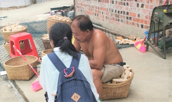 走进田地,队员们观察到,这里的玉米有一个明显特征,每一块种植玉米的田地上,都挂有一个牌子,上面标明了汉字和数字。村民告诉队员牌子上面的内容与所种植玉米种类有关。此时眼前凌乱凋敝的作物突然引起了队员的注意,从村民那里得知,周围的山上有猴子,会来偷玉米吃,而且今年的虫害比较严重,才形成这般景象。他还谈到,由于近年来土地过于分散,施肥成本显著提高,所以以前的虫害带来的影响比现在还严重。