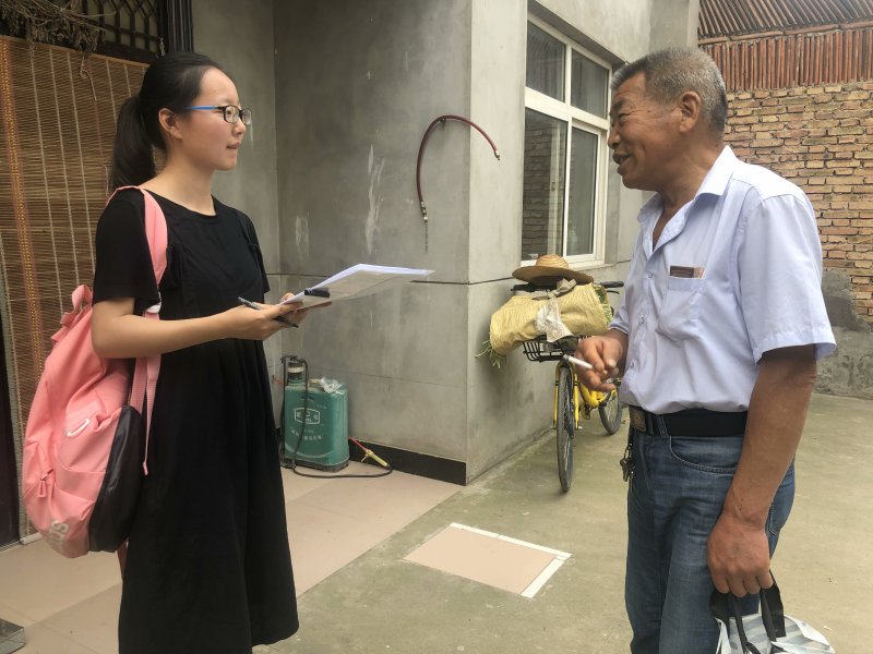 进入屯铺村,征得村委会的同意后,队员们开始了调研。队员们就畜禽禁养、家庭收入、医疗政策、社会发展、生活变化等话题与村民们进行了询问与探讨。一位村民说:“畜禽禁养政策虽然对我家收入产生了影响,但是好在家里儿子、儿媳妇都出去打工,家里目前的收入还能维持生活,而且畜禽禁养政策有利于环境保护,咱农民该支持还是支持。”透过他的话语,队员们感受到村民对养殖事业的一丝不舍,但更能体会到一个农民对于生态环境的热爱和尊重。