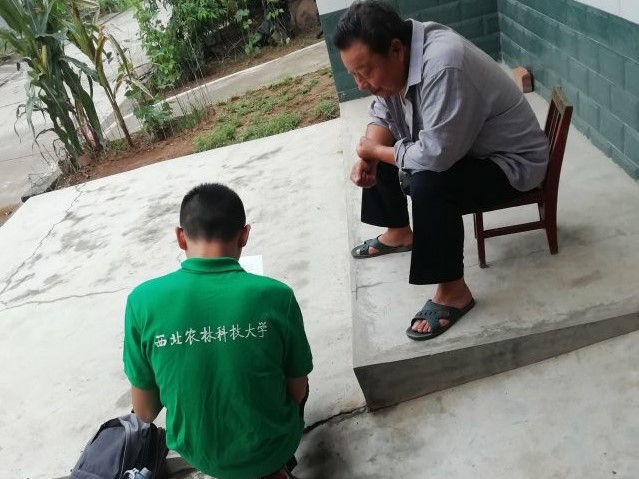 调研队在对农户进行问卷调查