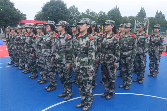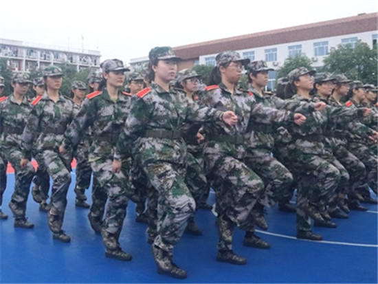 经管女生苦练军姿
