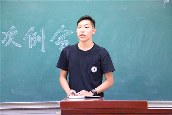 随后,学生会副主席刘洋介绍关于学院志愿者招募工作的相关事宜,就学生会协助学院招募志愿者展开详细部署,明确招募时间和形式,并对志愿者招募宣传工作提出几点要求,严肃说明禁止行为。他表示,各部门负责人在此工作中应秉着公平公正、完全透明化的原则开展志愿者筛选工作。接下来,文艺部负责人杜金就学院迎新晚会相关工作进行说明,对各部门的具体工作作出细致安排。最后,在团委学生副书记田镕恺讲解部门合并情况后,学生会主席林俊伟为此次会议做总结发言,希望各位团学干部认真细致、踏实努力,在接下来的团学工作中继续发光发热。
