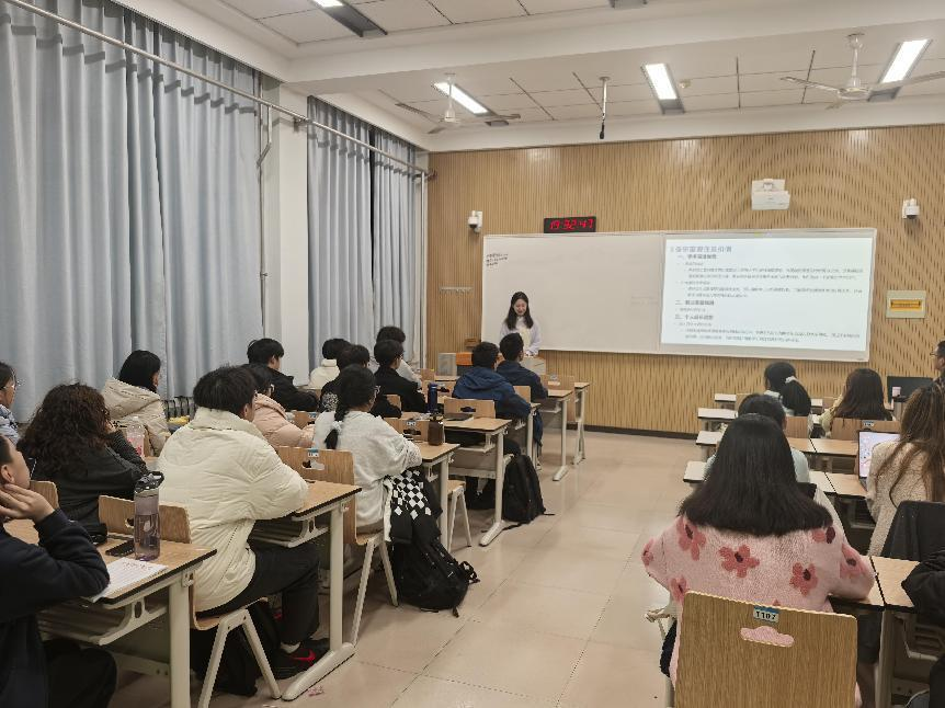 班主任商晓辉老师邀请已成功保研至上海交通大学的杨天寰学长和已成功保研至中国科学院大学的邓丽欣学姐登台分享自己的保研经历,他们帮助在座的大一同学深入了解了保研流程以及具体要求。杨天寰学长强调了大学期间的课堂专注听讲、课后及时复习以及积极拓展知识面的重要性,并分享了如何合理分配时间精力以及应对繁重学业任务的经验。同时他还分享了个人的竞赛经验,为同学们大学的多方面共同发展提供了宝贵的经验。邓丽欣学姐则分享了自己的科研从如何联系导师并加入课题,到最终取得成果并成功发表论文的经历,她鼓励大家积极参与科研实践,培养自己的创新思维与探索精神。这两位学长学姐将自己的保研经验、技巧方法都毫无保留地传授给了班级同学。